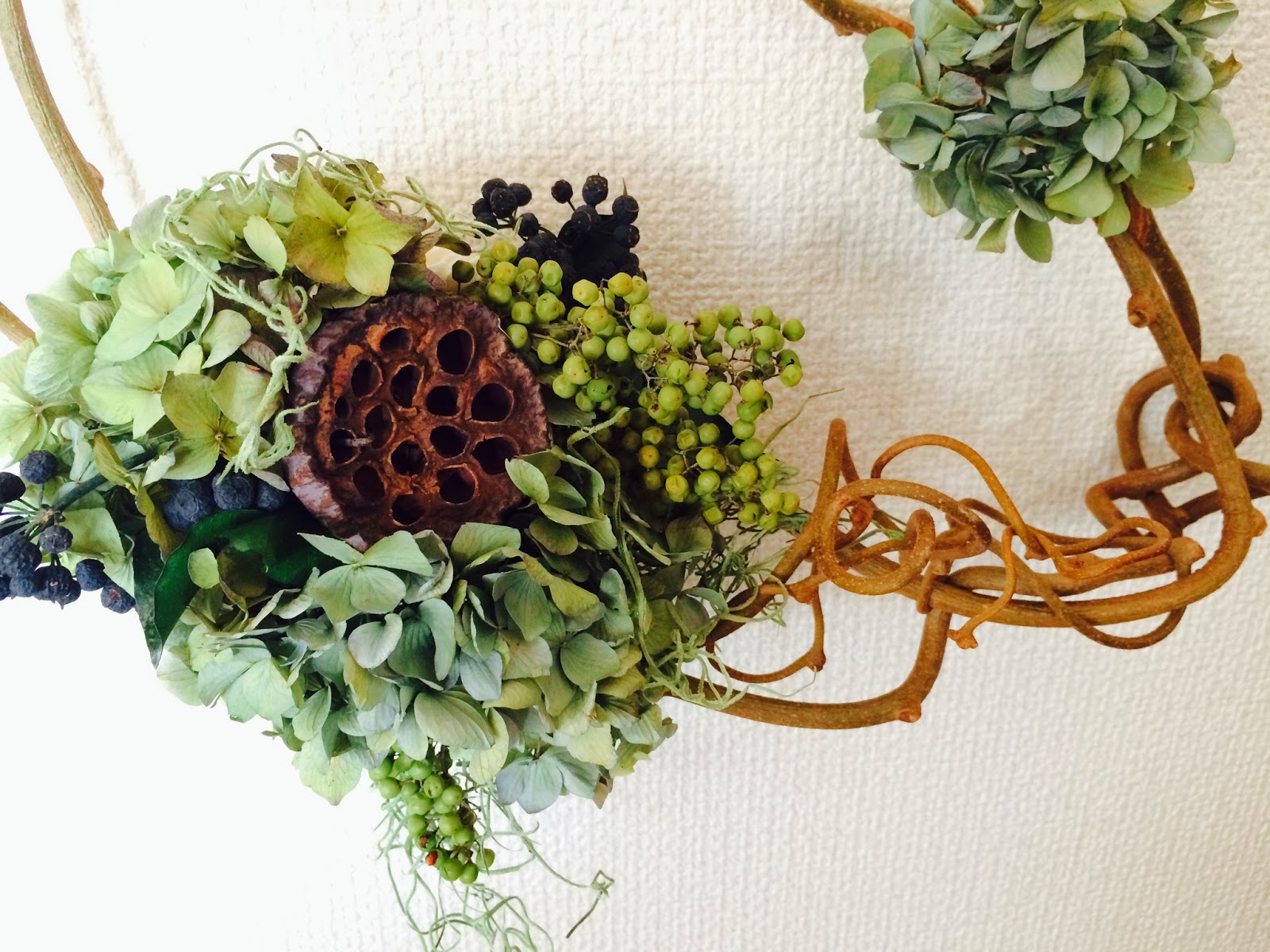 あまり告知をしていないのですが、当店ではリースや花束、グリーンの作成、販売をしています。